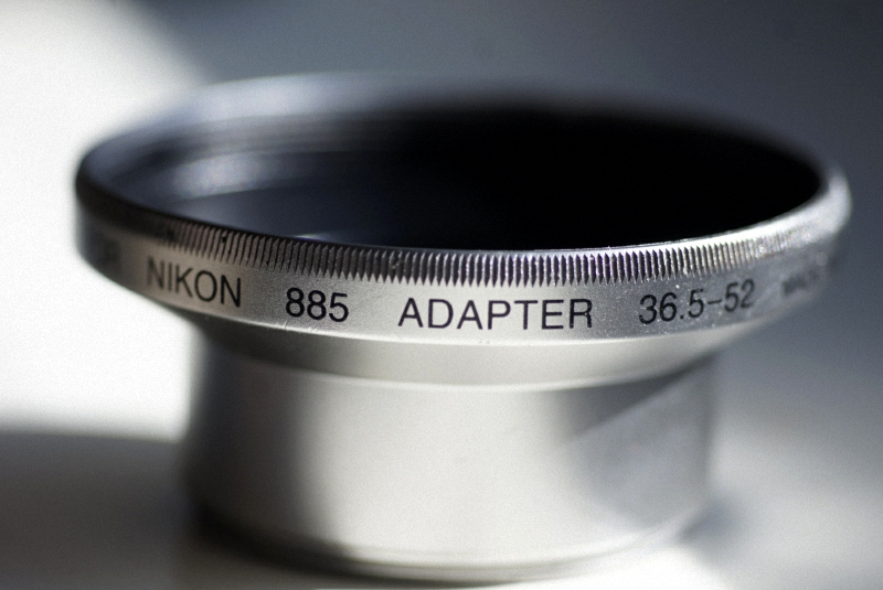 Fündig wurde ich schließlich bei einem Filter-Adapter für eine Nikon 885 ("Soligor for Nikon 885 Adapter 36.5-52").
