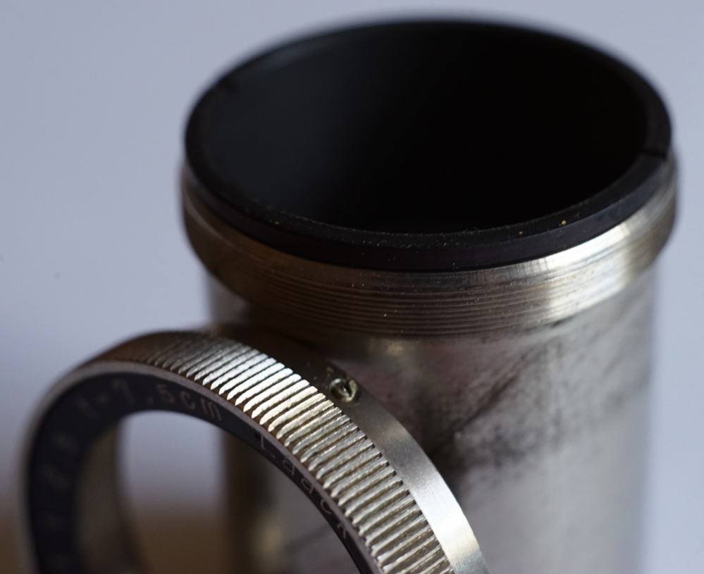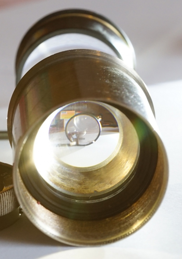 Der oft als Trioplaneffekt beschriebene Effekt ist hier sehr deutlich. Eine Linse, die im Simplex-Diaskop in den 30er Jahren verbaut wurde (1938?). Das Konstruktionsprinzip d�rfte dem Pololyt 3.5/75 entsprechen, dass in der Reflekta II verbaut wurde.