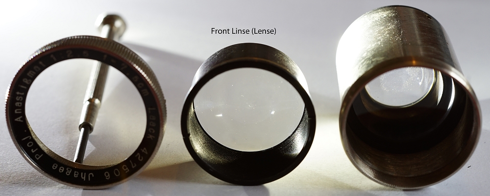 Erst danach läßt sich die Frontlinse mit samt Halterung herausdrehen.