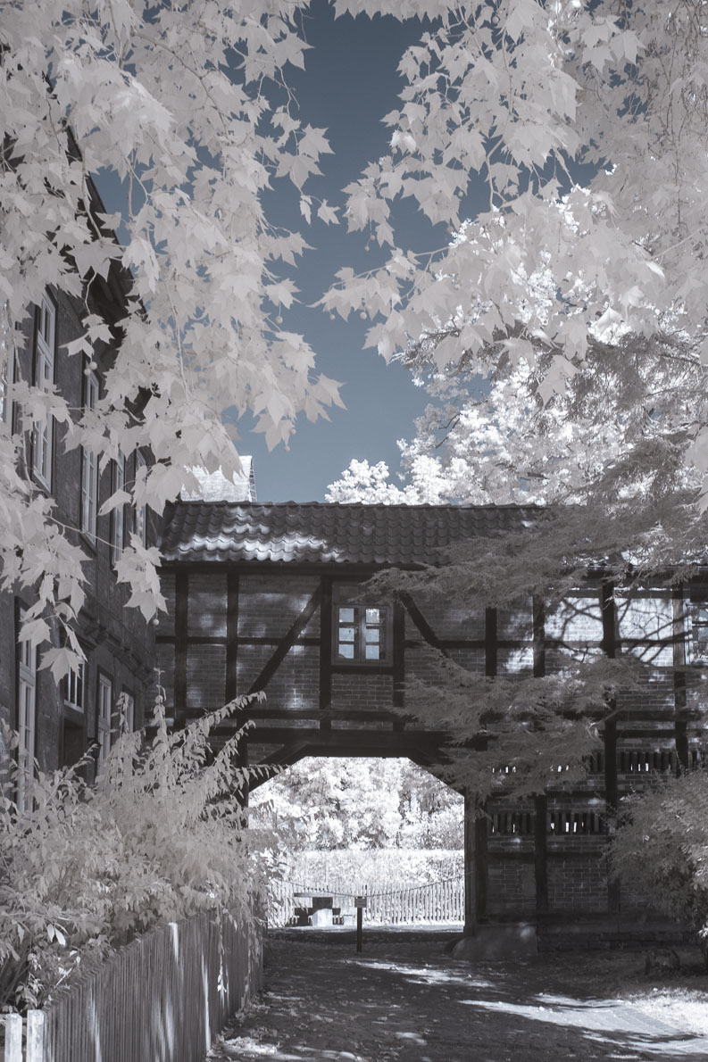 Ausschlaggebend dafür was allerdings, dass ich die X-A1 auf Infrarot habe umbauen lassen. Und während das Fuji XC 16-50/3,5-5,6 für Infrarot unbrauchbar ist - Hotspot teilweise ab Offenblende, miserable Ränder da die digitale Korrektur der chromatischen Aberrationen im Infraroten versagt - liefert das Beroflex dort eine sehr gute Leistung ab, gute Schärfe und frei von Hotspots bei allen Blenden, Brennweiten und Entfernungen. (Im sichtbaren Licht hingegen treten die erwähnten Schwächen beim Fuji nicht auf, und dort hätte ich es als Urlaubsobjektiv behalten.)