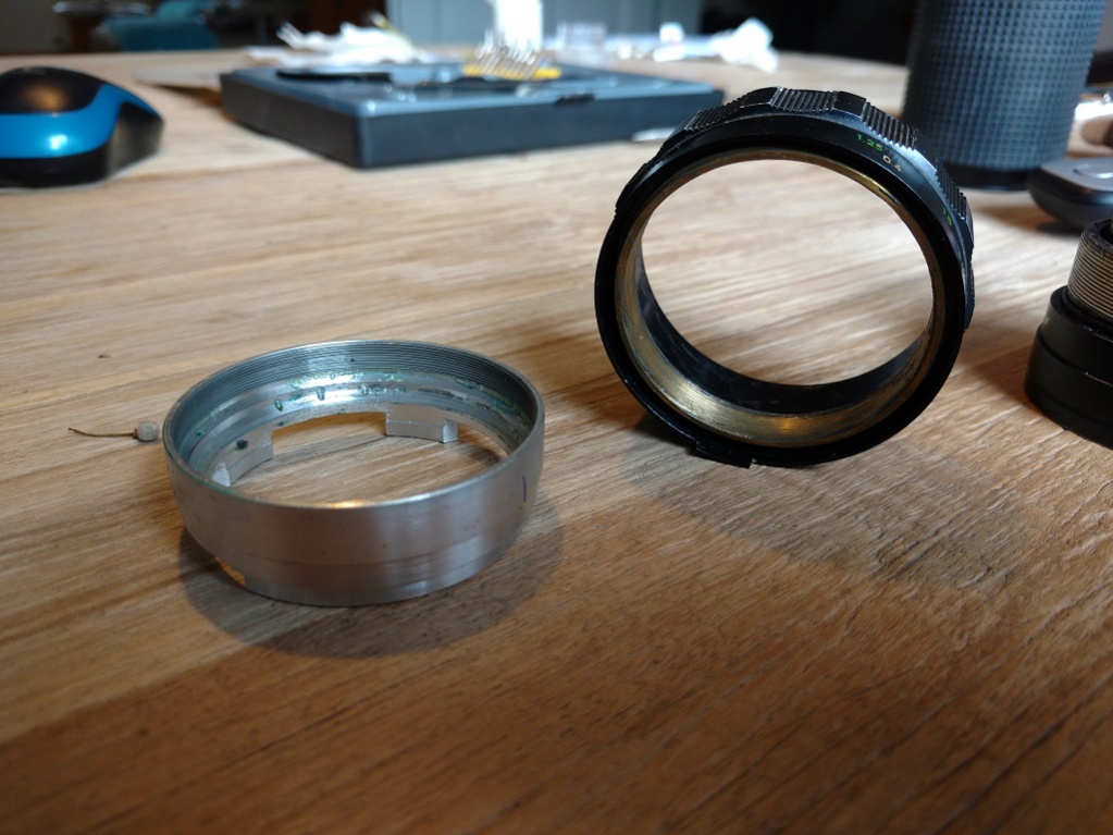 Zur Info, das ist ein Minolta MC W-Rokkor HG 35mm f2.8, das ich geschenkt bekommen habe. Die Blende schloss gar nicht mehr und war total verölt, das ist soweit behoben. Nur komme ich an dieser Stelle nicht mehr weiter. Das ganze sollte auch gar nicht auseinander geschraubt werden, war gar nicht nötig :donk