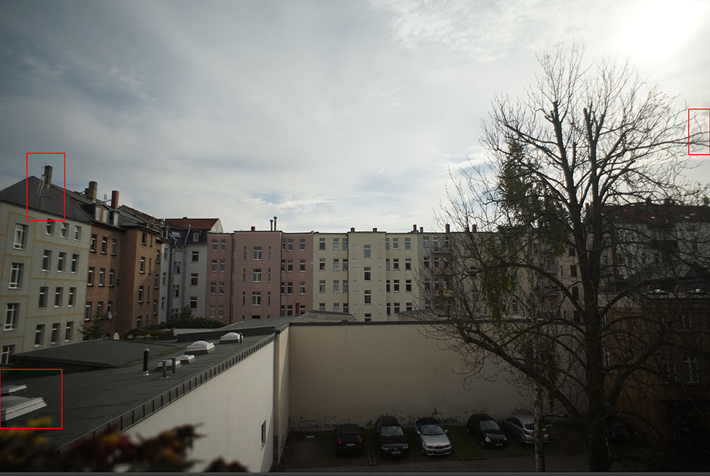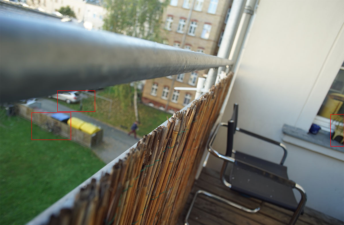 Im Folgenden immer erst ein Gesamtbild - das 2.8/20 mm als erstes dann das 4.0/20mm - gefolgt von jeweils zwei 100% Crops, je eines oben rechts und eines unten rechts.