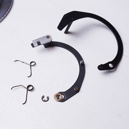 Zuerst hab ich die Spannung beider Federn die im ersten Bild markiert sind ausgehängt. Danach um die Steuerkurven ausbauen zu können den Sicherungsring entfernt. Und noch den mit zwei schrauben befestigten Metallteilchen (im ersten Bild unten zu sehen) abgeschraubt.