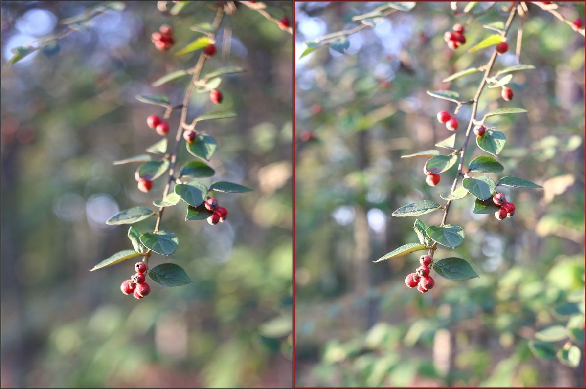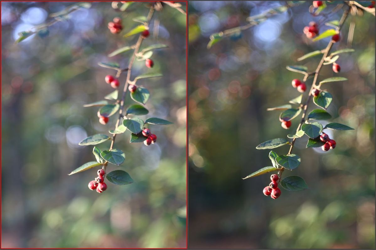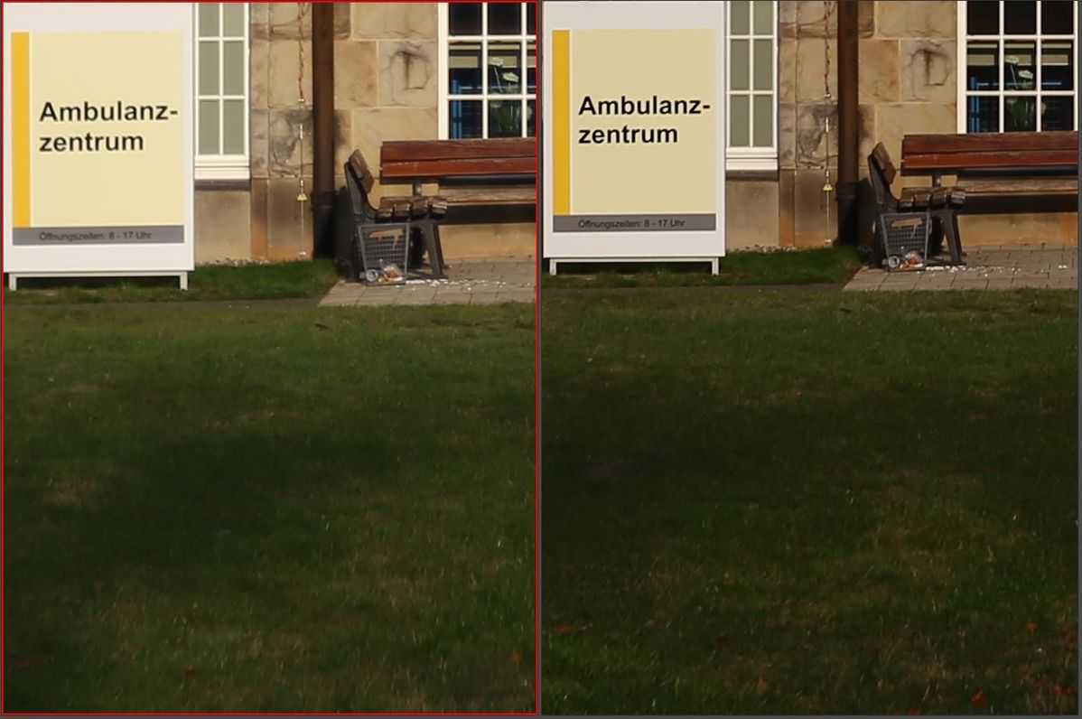 Nun das Travenar links mit Blende 2.8, rechts mir Blende 5.6