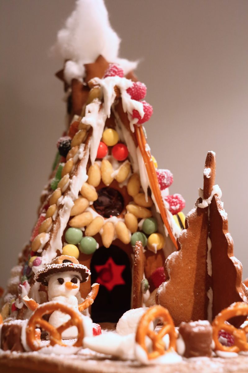 Das Knusperhäuschen bei Blende 2.8 , Fokus auf den Schneemann.