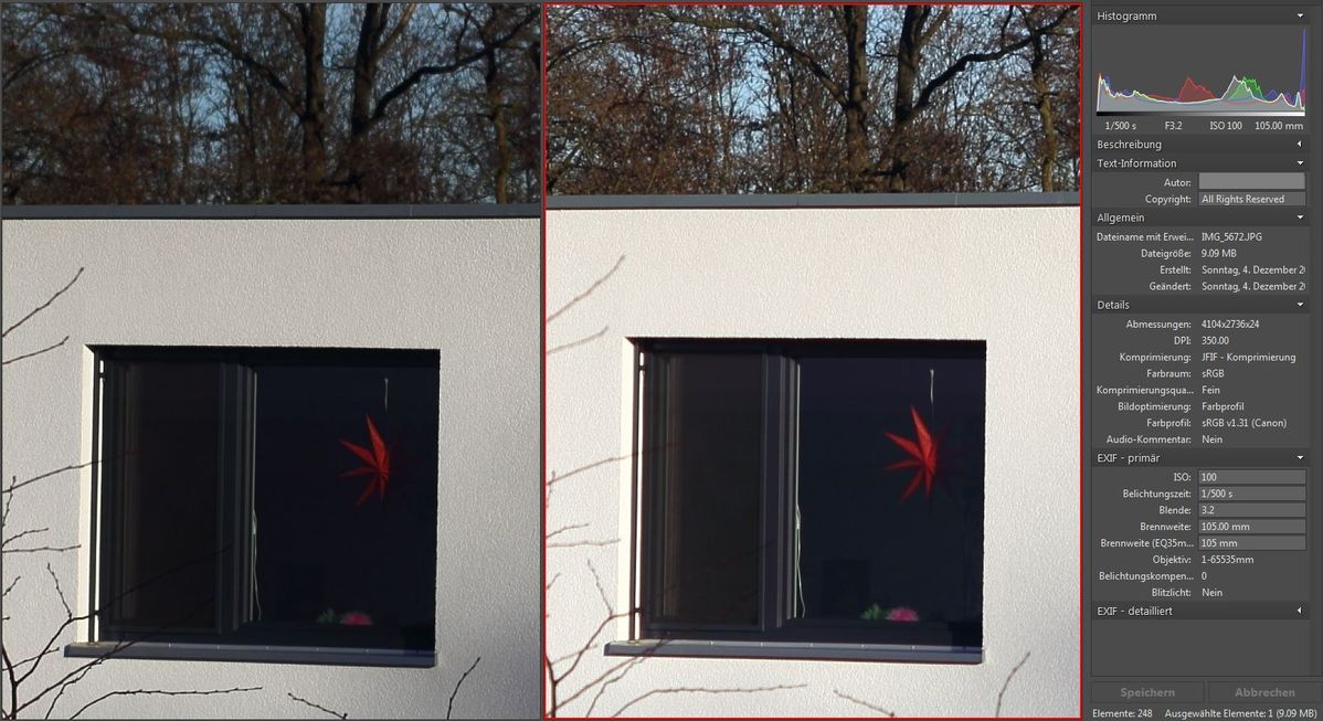 Jetzt ein Vergleich in Bezug auf Schärfe mit dem 2.8/105mm Takumar Preset bei Blende 8.0