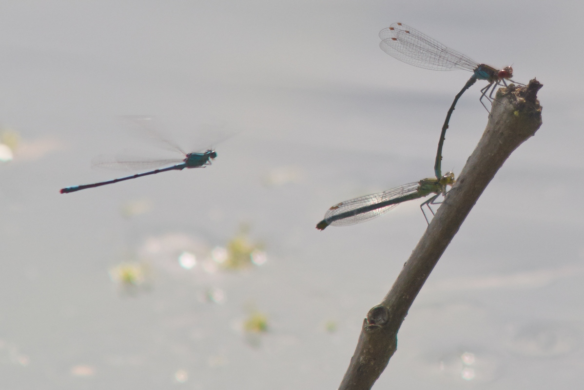 Libellen Im Flug zu fotografieren ist schon ein sehr schwieriges Unterfangen - ich habe das mehrfach diesen Sommer probiert, meist mit meinem Tamron AF 200-500mm bei abgeschaltetem AF und sehr wenig brauchbaren Bildern.