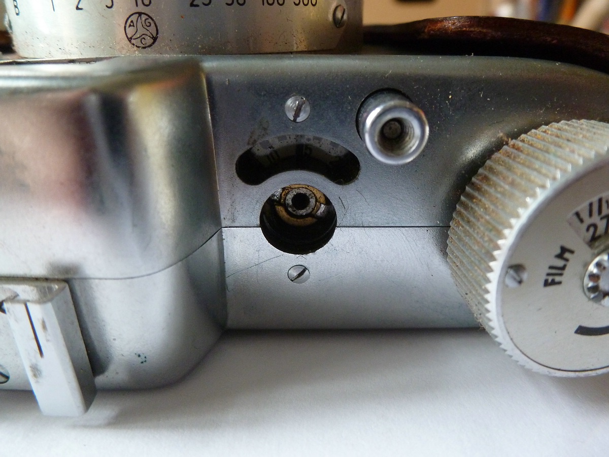 eine Art hohle Rändelschraube mit einer breiten, innenliegenden Schlitzschraube zum Befestigen.