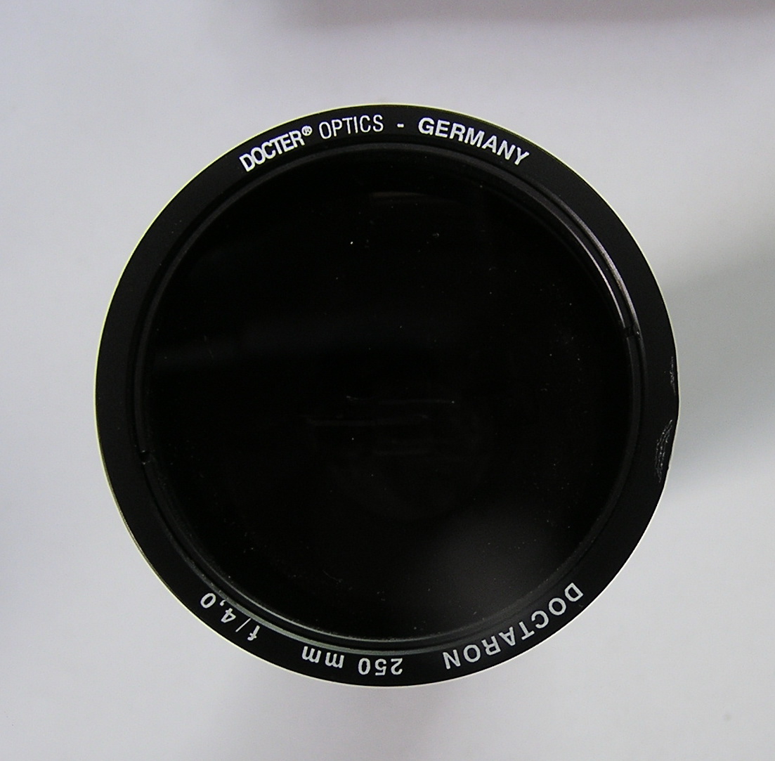 Heute kam das Doctaron f4.0 250mm an ein riesiges Projektionsobjektiv mit 7cm Durchmesser vorne hinten 5cm und 23cm Länge.