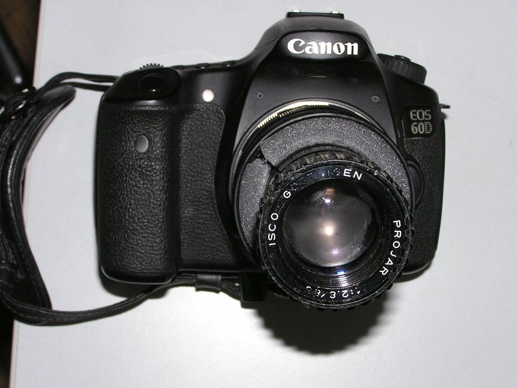 Ok wieder was zum spielen bei dem Wetter dachte ich. Nun habe ich das Objektiv vor die 60D gehalten und musste feststellen das geht ohne große Arbeit. Das Plastikobjektiv hat vorne einen Durchmesser von 47mm hinten 42mm und eine Gesamtlänge von 67mm.