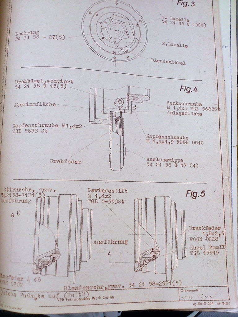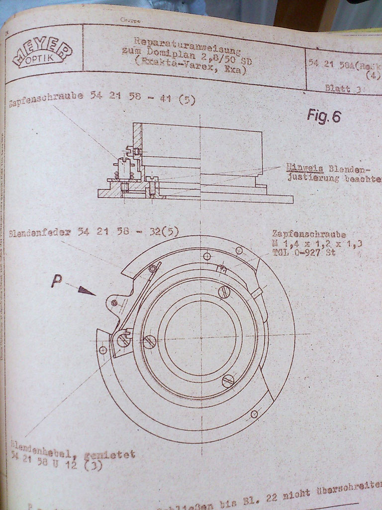 Wer von euch kann mir weiterhelfen? Bin noch ein ziemlicher Altglasneuling und stehe vor folgenden Problem: Vor mir liegt ein halb fertig montiertes Domiplan, das von einer Exa 1a stammt, und ich frage mich, wie man den Drücker für die Springblende einbaut. Wohin kommt dieser kleine Metallstift? Der klöterte vorher nämlich im Objektiv herum. Hat jemand von Euch vielleicht eine Schnittzeichnung von der Druckblende? Ich hab bei meinen Internet-Recherchen bislang leider nichts finden können ...