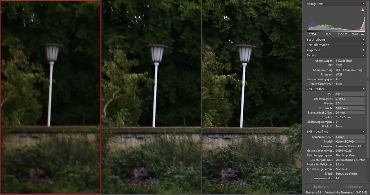 .. an der 6D, zunächst das Test-Motiv für den Schärfetest bei F8