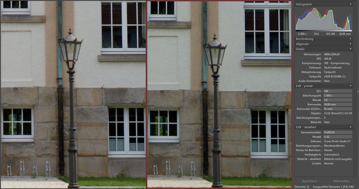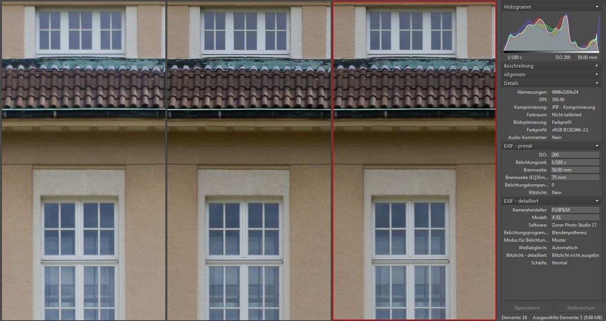 Im Vergleich dazu einmal das Travenar zum Fuji Kit-Zoom bei 35mm/5.6 :