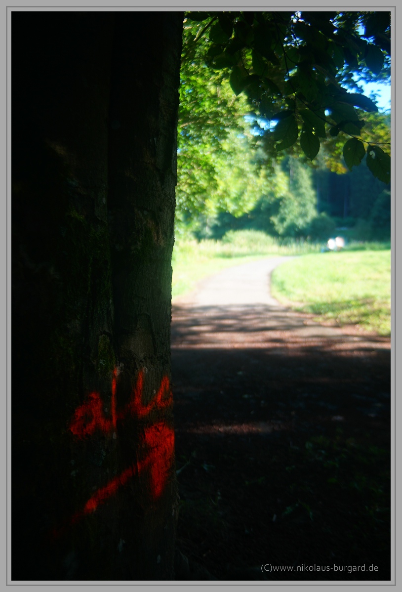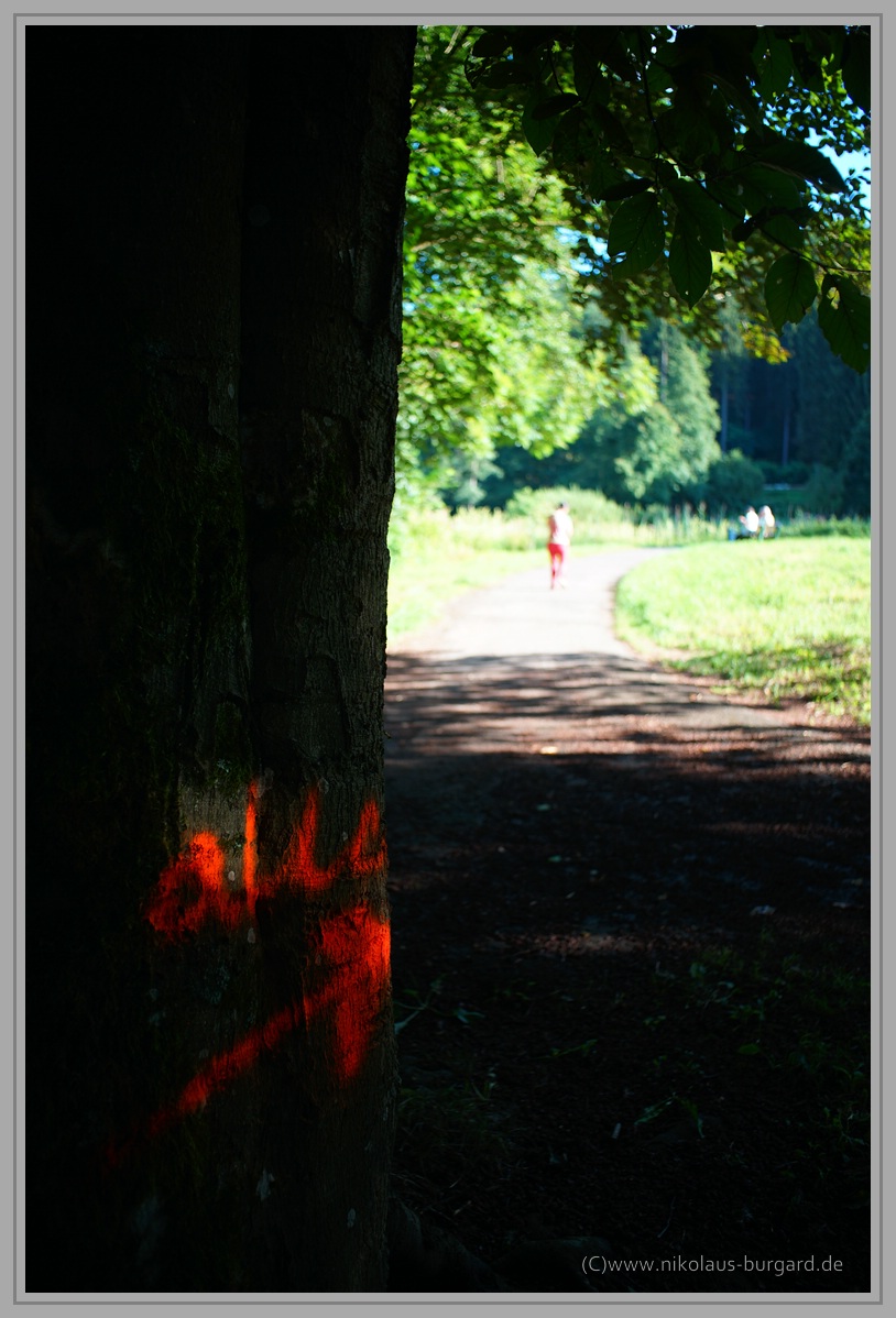#7 OB, Fokus auf den Blättern des Baumes im Vordergrund: