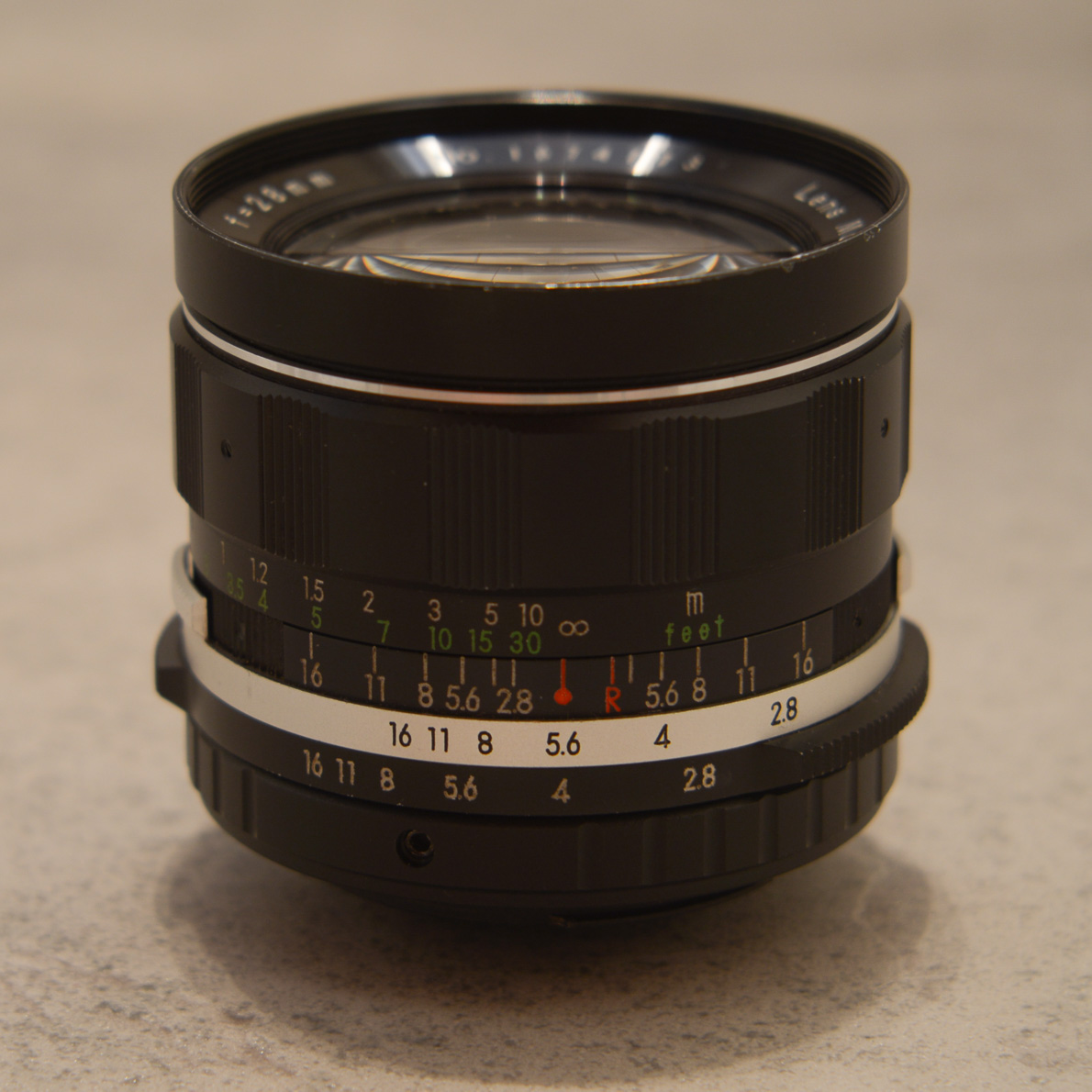 - Größte Blende 2,8, kleinste Blende 16, rastet in ganzen Blendenstufen ein