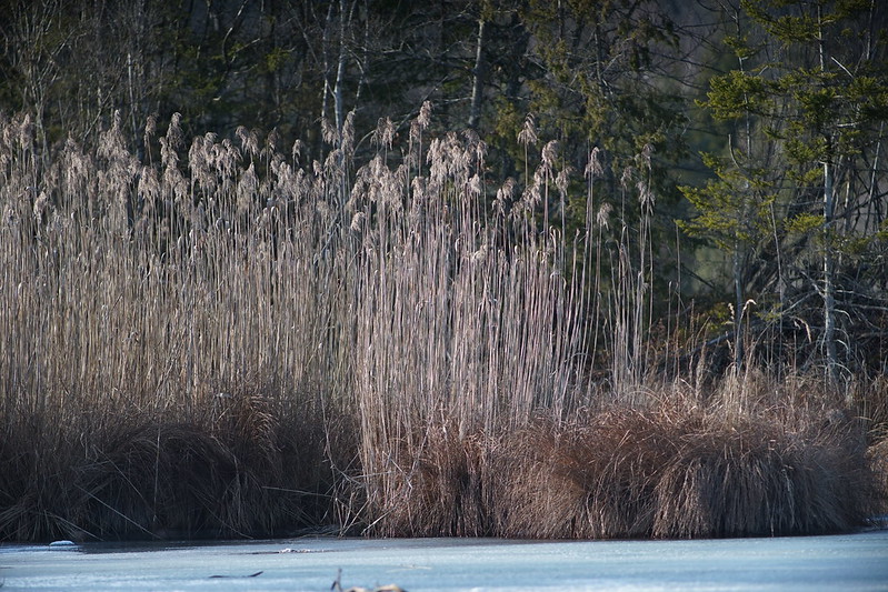 Der Hals des Tieres ist zu kurz. Beim nächsten Bild sind Schilfhalme das Thema. Diese sind dünner als 3 Pixel; daher eignen sie sich vielleicht nicht wirklich um Aussagen zur Qualität des Objektivs zu machen. Das Objektiv bildet aber im Rahmen der Auflösung korrekt ab, oder?