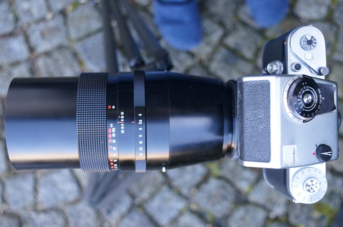 Ach ja, warum hat es mir ausgerechnet dieses Objektiv angetan? Das 300er Sonnar ist die längste Brennweite der Pentacon Six mit Automatikblende / Springblende. Das Objektiv ist für mich das schönste der P6 Sonnare. Ich wünschte Kamera samt Objektiv und Stativ würden nur ein Zehntel wiegen oder ich wäre zehnmal so stark. Dann hätte ich es oft im Einsatz.