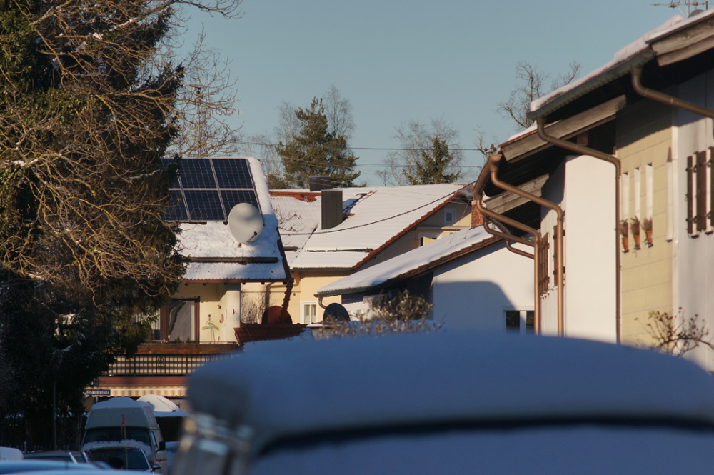 Diesmal ist die Fokussierung vergleichbar. Die unterschiedlichen Farben der Drähte sind schon erstaunlich... ...und die Größe der Satellitenschüsseln.
