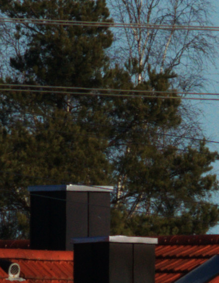 Ich habe nochmal Bilder in RAW aufgenommen. Für folgende Ausschnittsvergrößerungen habe ich die RAW mit ufraw in ppm konvertiert (automatischer Weissabgleich). Daraus habe ich dann mit GIMP den Bereich ausgeschnitten und als jpg exportiert.