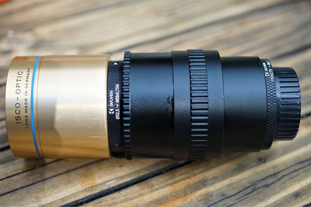 mit drei Madenschrauben festgezogen. Beide Adapter kommen von der russischen Firma RAFCAMERA, deren Produkte