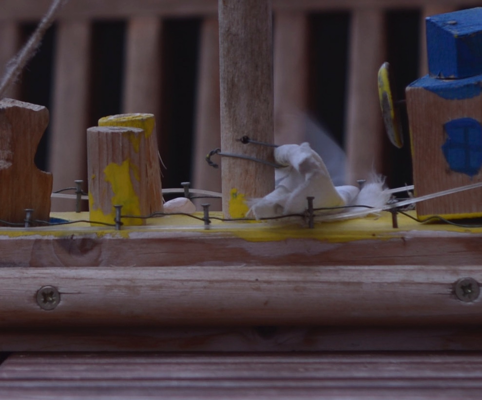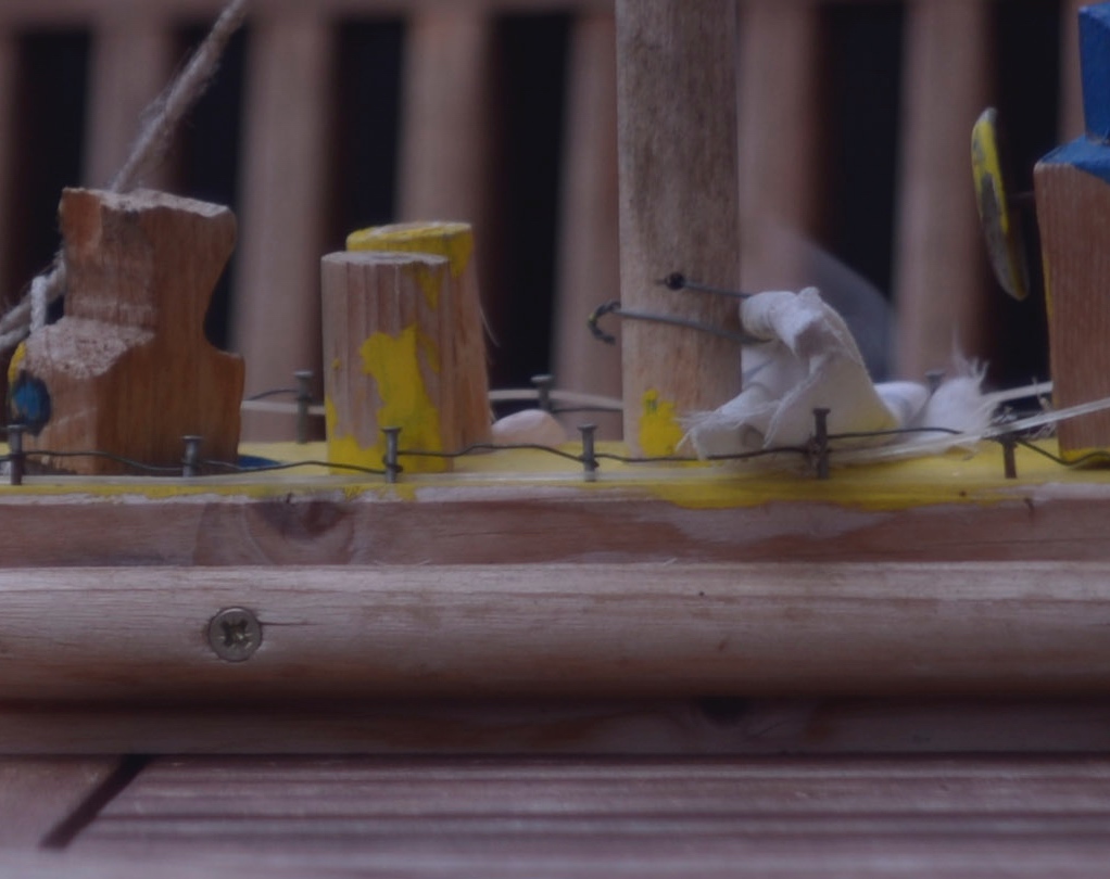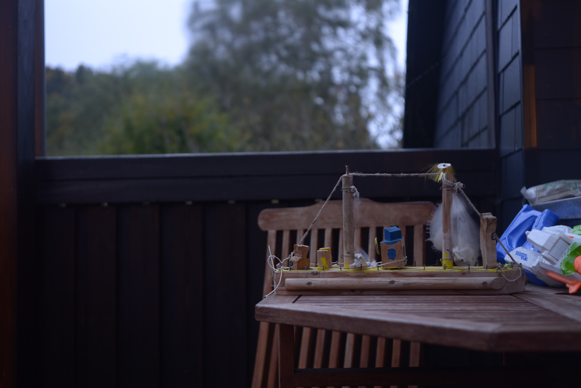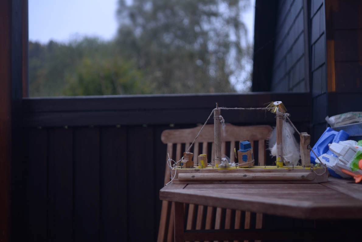 Fokussiert wurde auf das Holzschiff im Vordergrund. Man betrachte die Bäume im Hintergrund.
