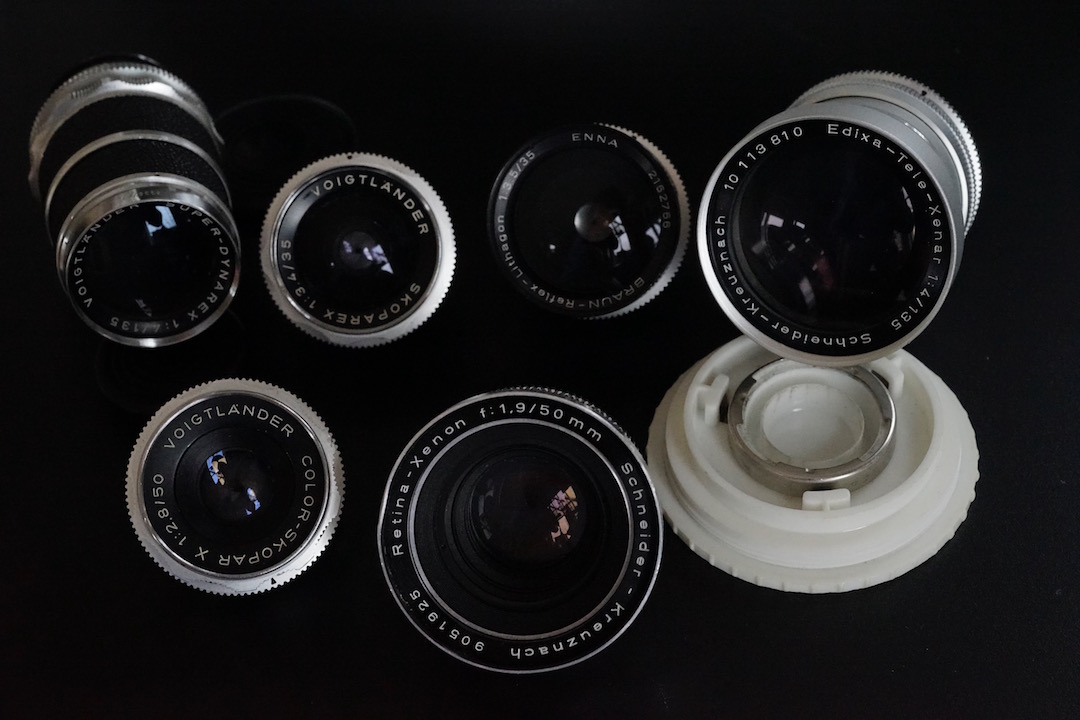 Das DKL-Bajonett wurde in den 50er- und 60er-Jahrne von mehreren westdeutschen Kameraherstellern genutzt. Es gibt zwei Varianten vom DKL-Bajonett, einmal das ältere, wo der Blendenring am Objektiv sitzt (z. B. bei diesem Rodenstock), und welches z. B. für die Voigtländer Vitessa T oder die Braun Colorette genutzt wurde, und das neuere DKL-Bajonett, welches den Blendenring an der Kamera hatte (z. B. bei diesem Schneider-Kreuznach), was dann für die Voigtländer Bessa und die Kodak Retina Reflex IV genutzt wurde (mit einer kleinen Schikane, damit man die Objektive nicht einfach austauschen konnte). Der Name DKL (oder Deckel-Bajonett) ist übrigens nicht historisch, sondern erst seit wenigen Jahren in Gebrauch.