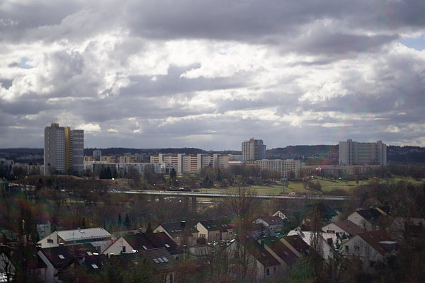 Bei starkem Sonnenlicht kann es zu farbigen Lensflares kommen und das Scharfstellen mit dem Fokusring ist Glückssache.