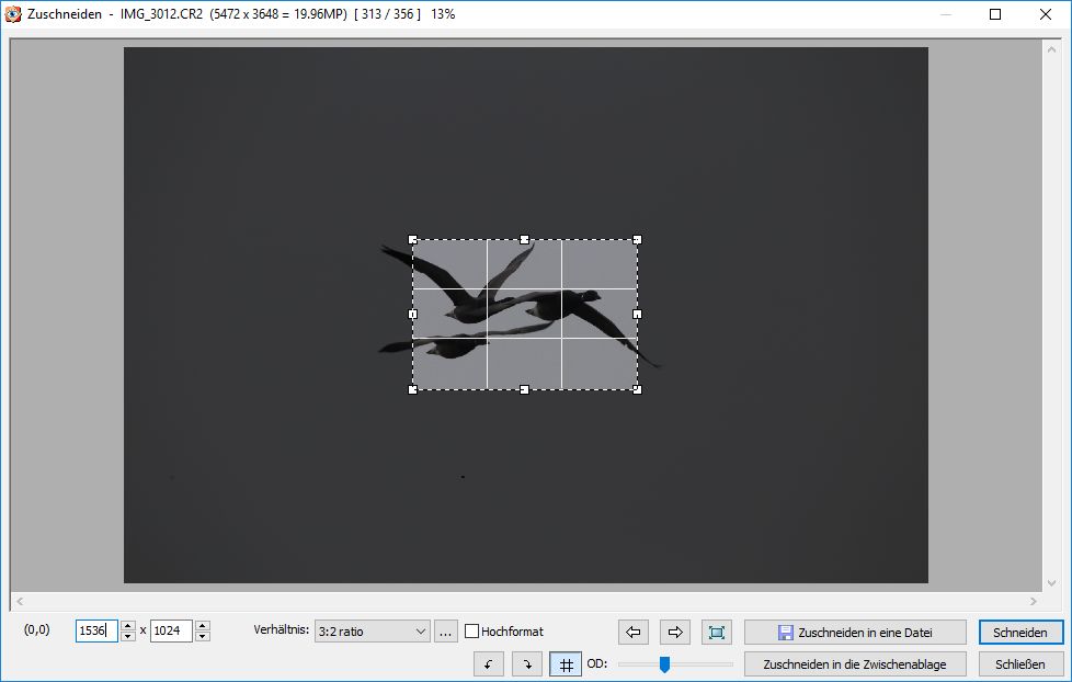 Wenn Du uns also aus einem Bild z.B. 1536x1024 Bildpunkte zeigen willst, kannst Du uns genau diese Bildpunkte ausschneiden/zuschneiden. Dabei ist dieses Maß ein schlechtes Beispiel, weil ja maximal 1199 Pixel breite Bilder mit weniger als 300Kb erlaubt sind.
