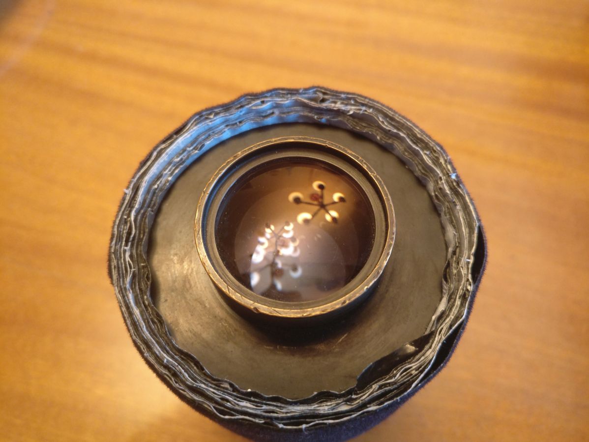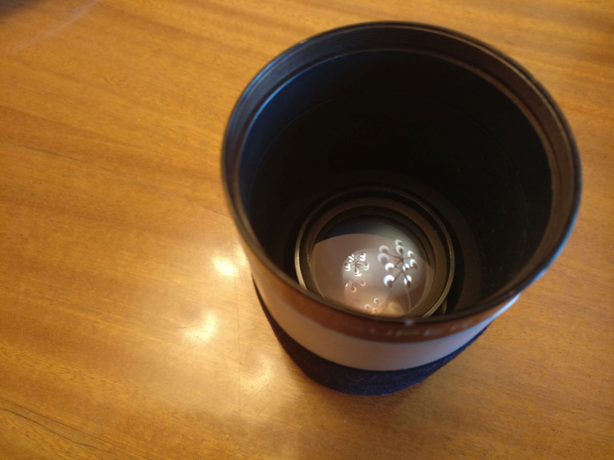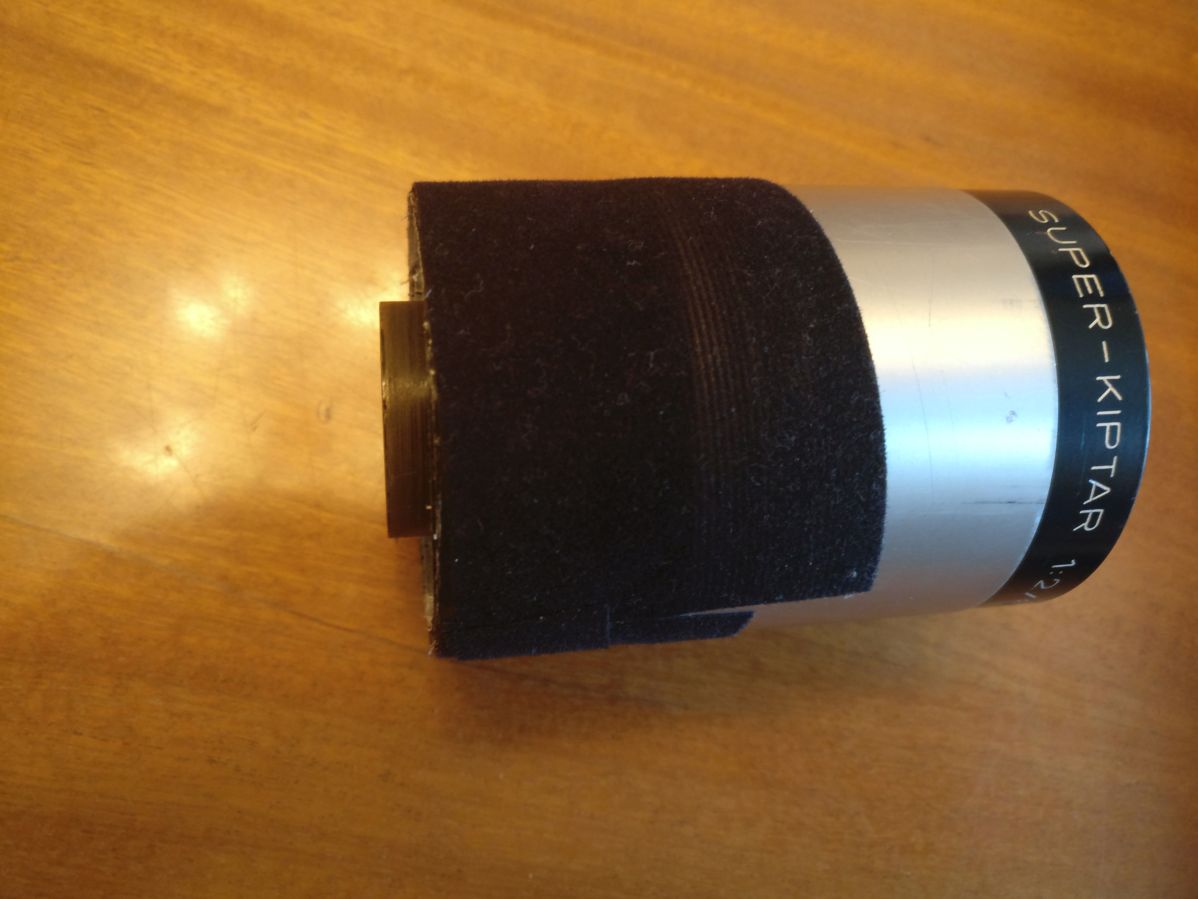 Das Objektiv besteht wahrscheinlich wie das 2/90iger auch aus 4 Teilen, wobei es seine eigene Sonnenblende netterweise schon mitbringt. Hinteres Glas 3 cm Durchmesser, vorne 4 cm. Gesamtlänge des Objektivs 9 cm. Vermutlich wieder zwei Linsenblöcke, die ich aber nicht weiter versucht habe zu öffnen.