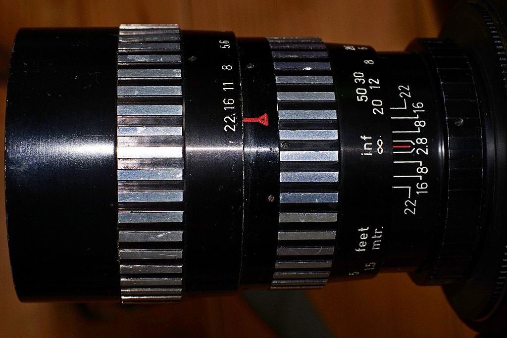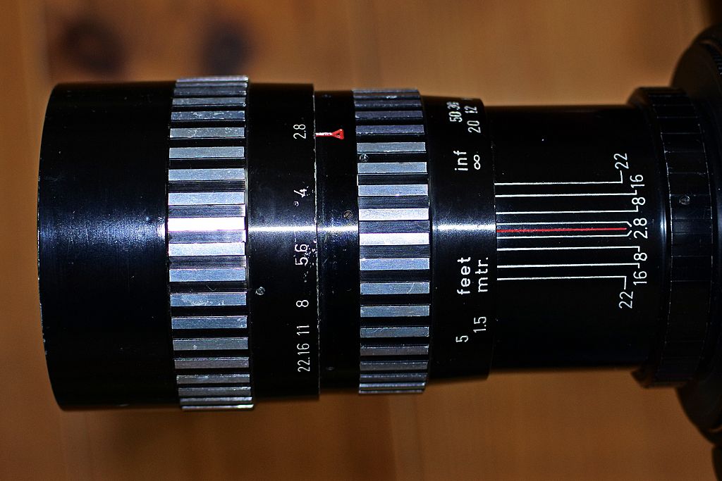 Blendebereich 2.8-22 , rastet in ganzen Blenden
