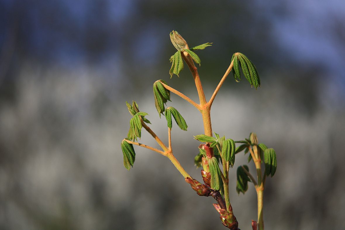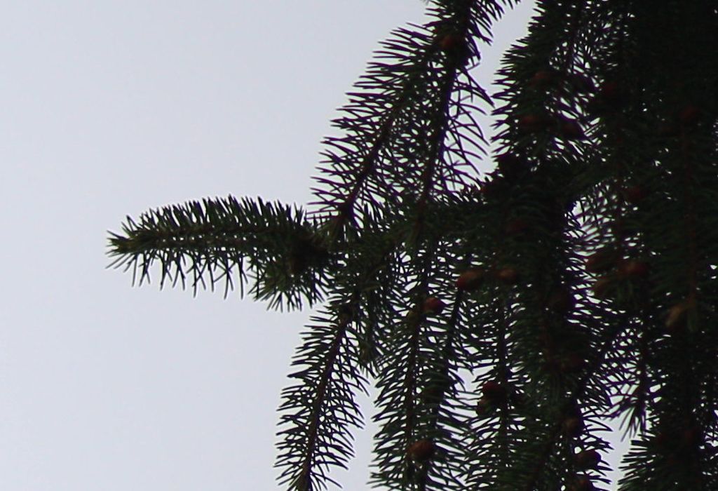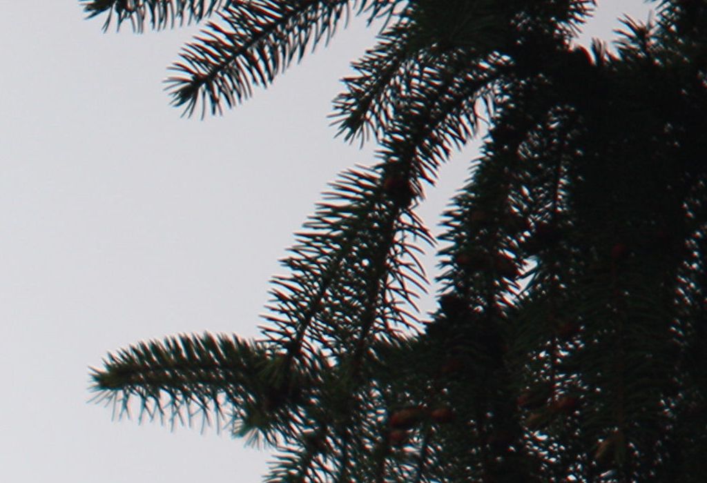 Auf der Suche nach chromatischen Aberationen bieten sich Äste vor grauem Himmel immer an: