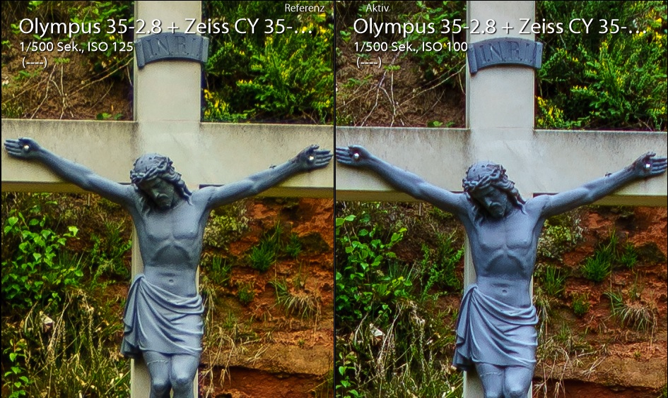(Offenblende-)Vergleich Olympus OM 35mm f2.8 + Zeiss Distagon 35mm f2.8 (C/Y)