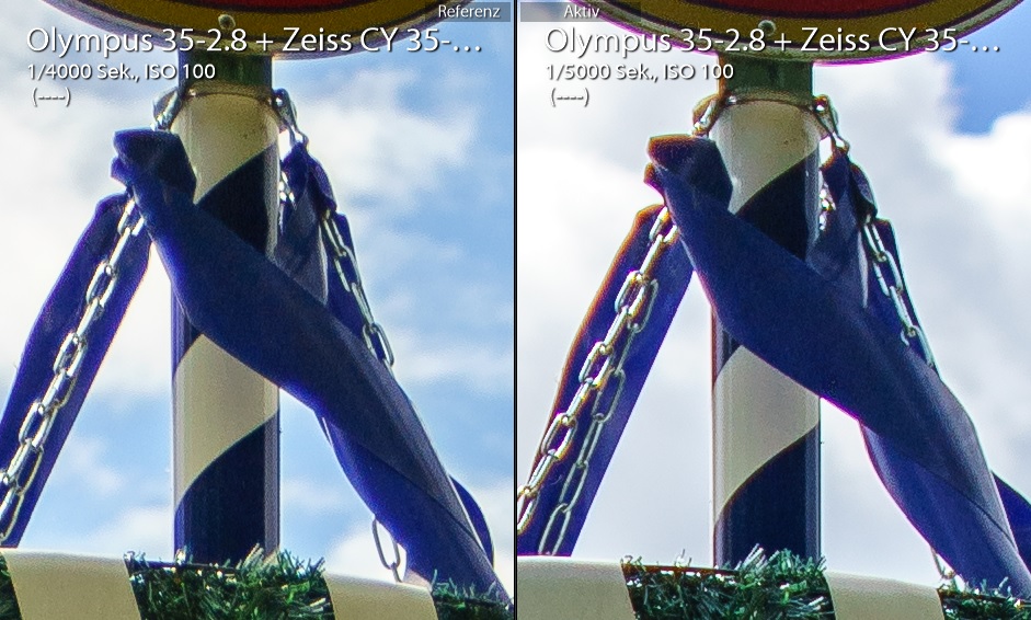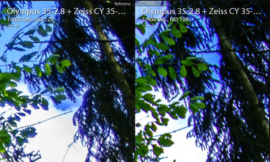 Was die CA direkt hinter der Schärfeebene angeht hat das Olympus blaue Säume,