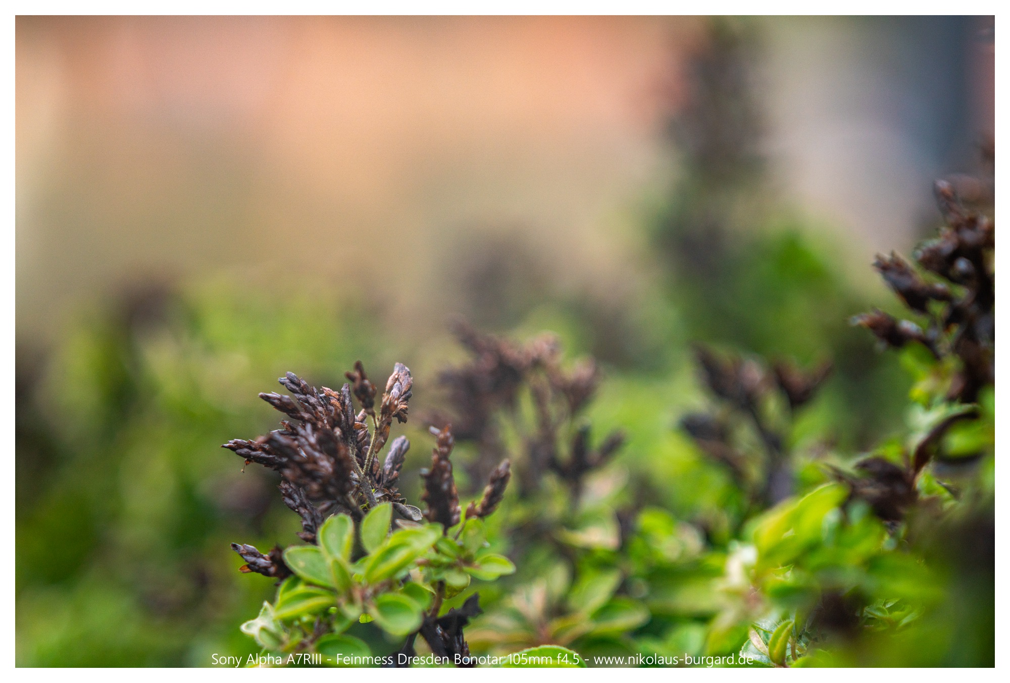 Letzte Woche hat ein Bonotar M42 auch seinen Weg zu mir gefunden. Beim ersten in die Hand nehmen fielen mir die bereits beschriebenen Fertigungstoleranzen auf: Ein leichtes Spiel des vorderen Tubuselements, sowie ein leichtes Spiel am Blendenring. Ob ersteres sich auf die Schärfeebene auswirkt, konnte ich noch nicht feststellen. Erste Testbilder entsprechen jedenfalls den Erwartungen in Bezug auf Schärfe und Bokeh. Bei dem Deko-Bild war der Fokus auf dem Stiel des Kürbis.