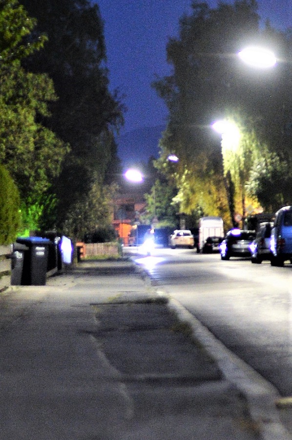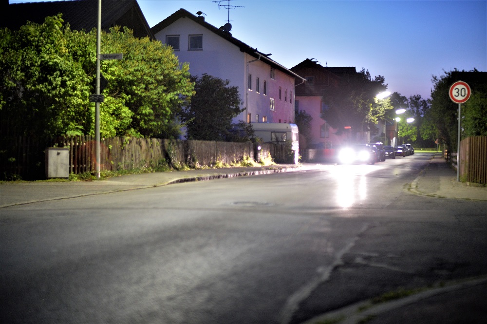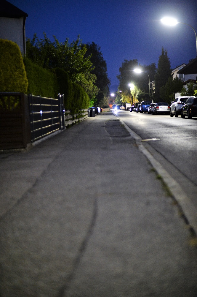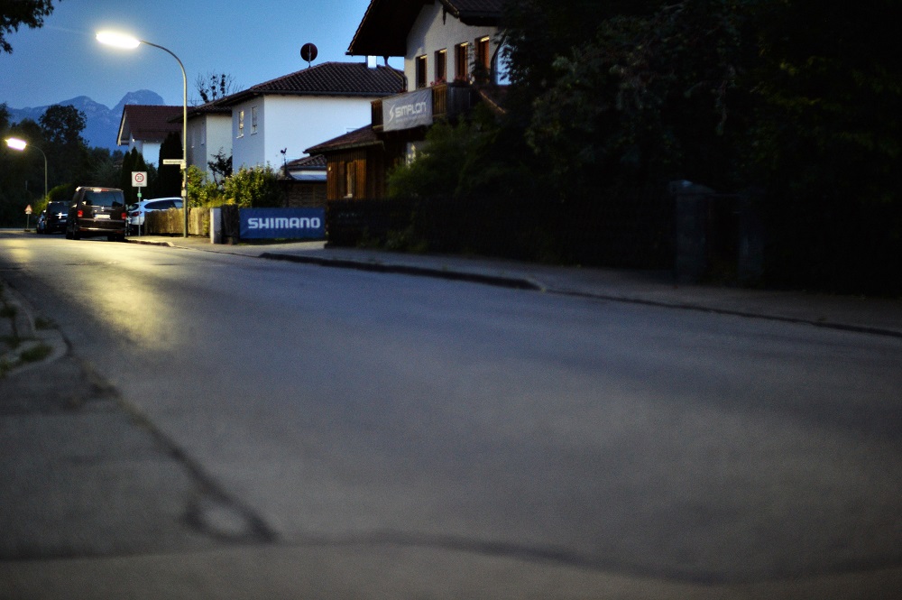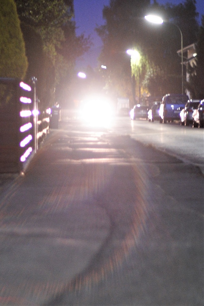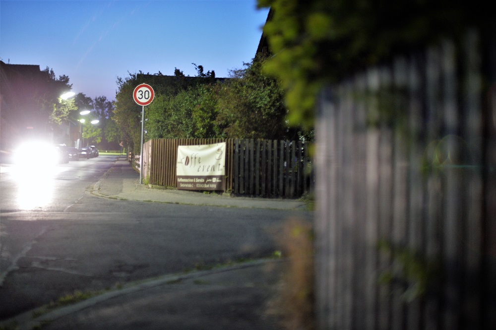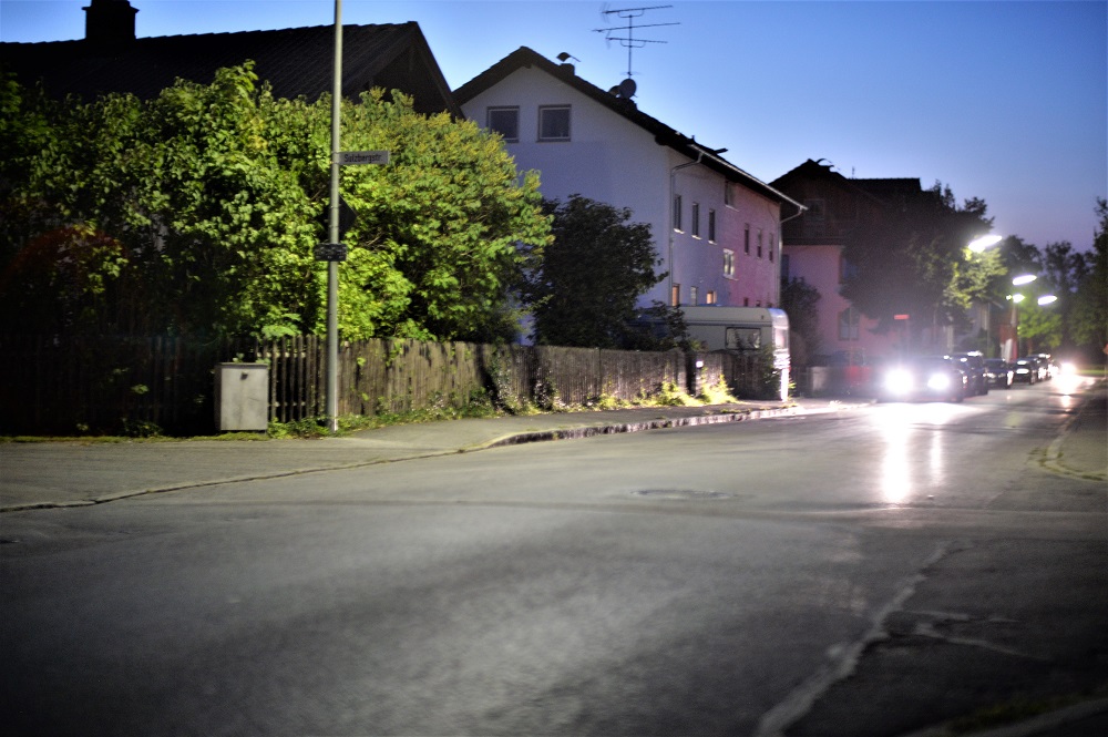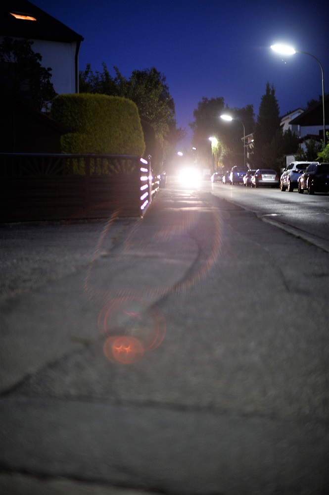 Hier ein Panorama (Blende 1,2, Kamera am Pfahl einer Strassenlaterne abgestützt,