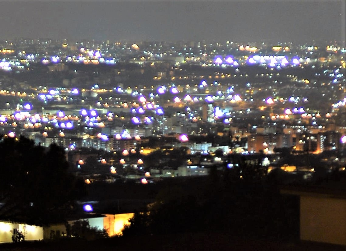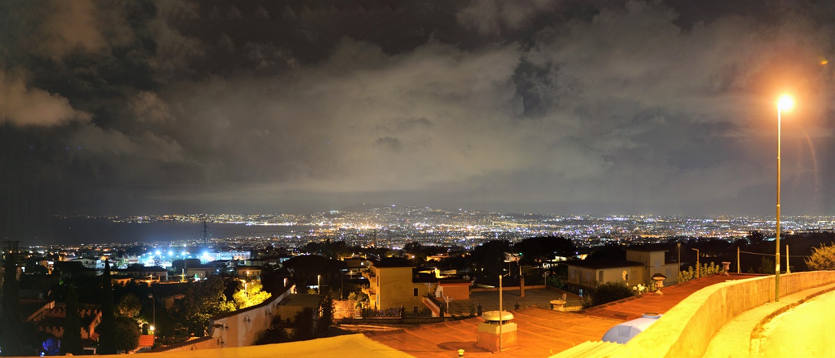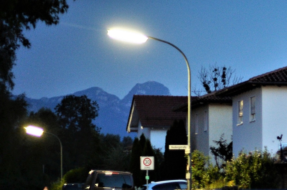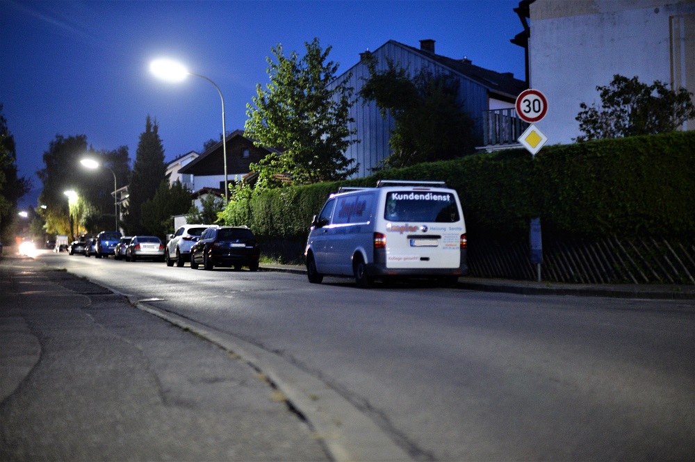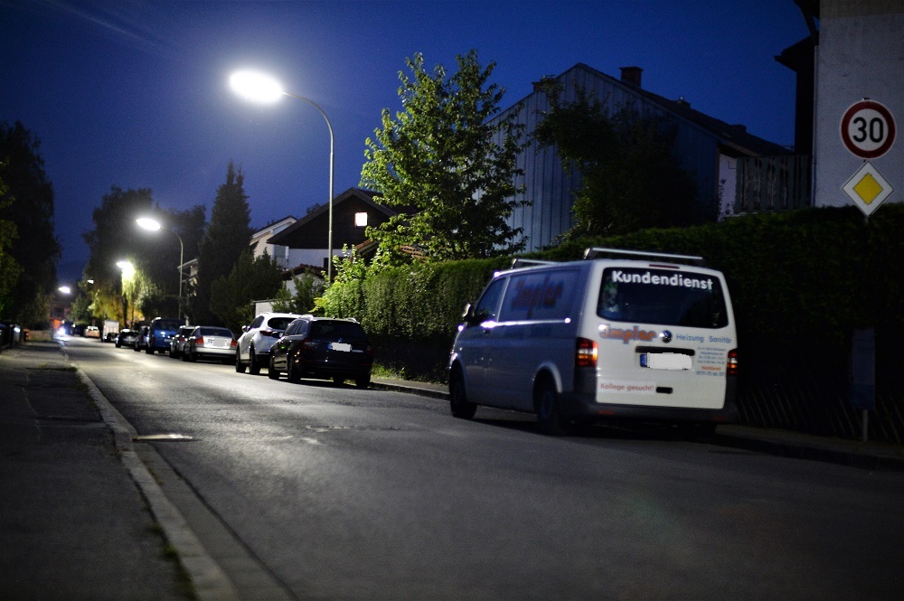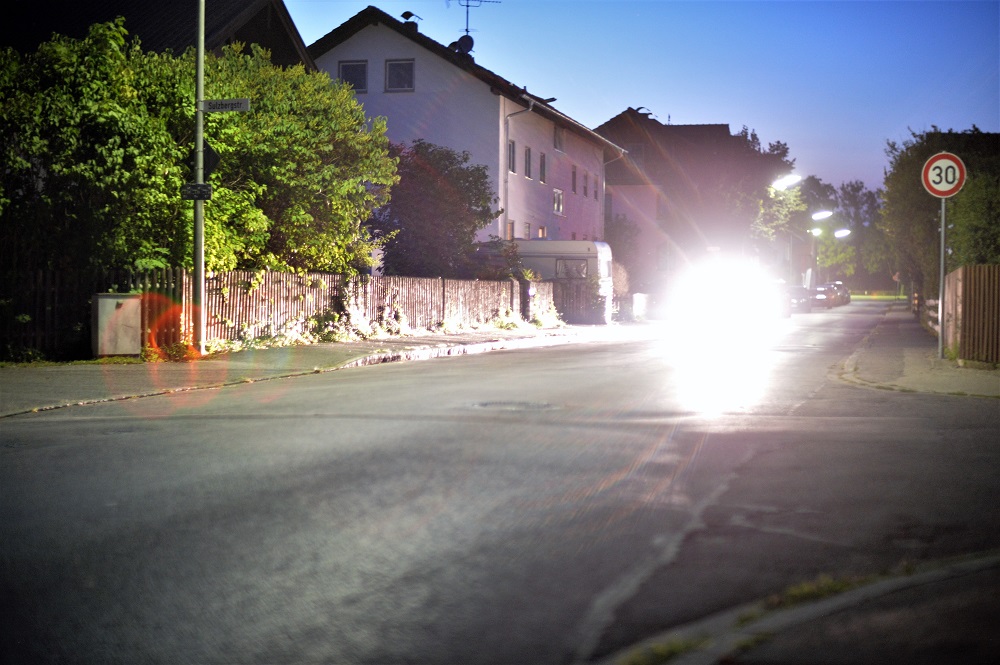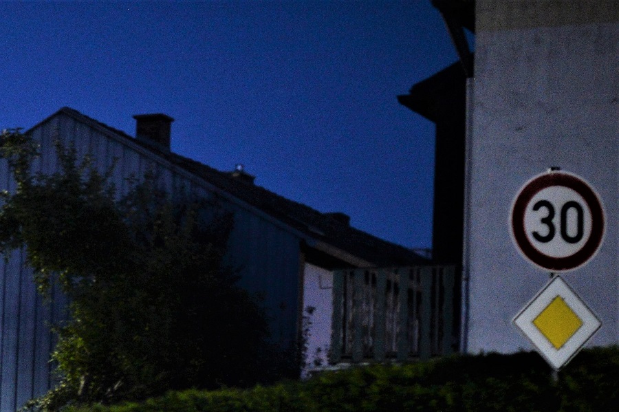 Hier ein Panorama (Blende 1,2, Kamera am Pfahl einer Strassenlaterne abgestützt,