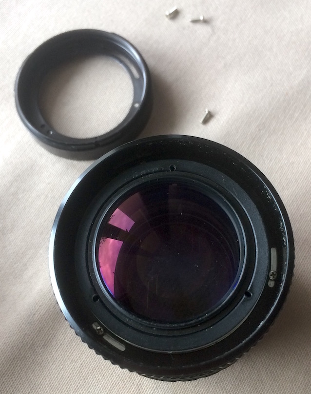 dann die drei Schräubchen die den inneren Ring halten unter dem das Frontelement fixiert wird.