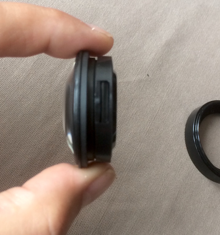 Das gesamte Frontelement besteht aus drei Gläsern, die von einem schwarzen, kleinen Tubus umschlossen werden.