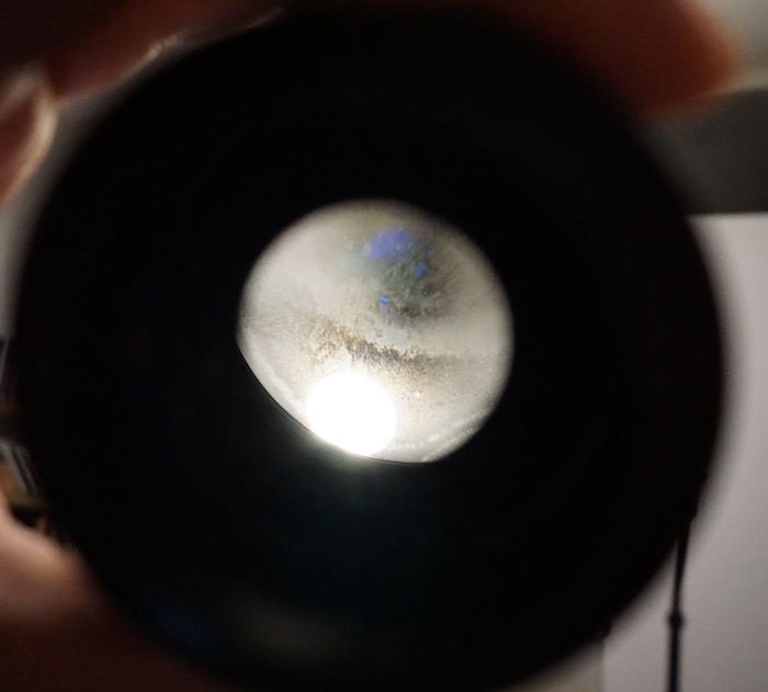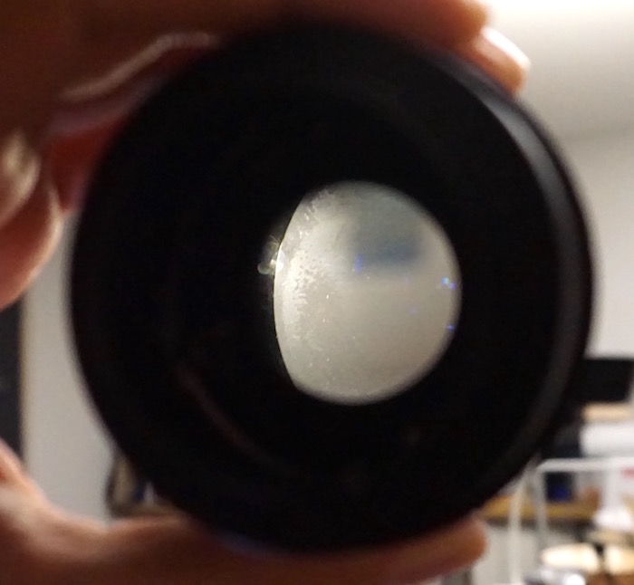 Jetzt nach dem Wiederzusammenbau ist der Schleier komplett weg, lediglich winzige Staubeinschlüsse sind noch zu sehen..