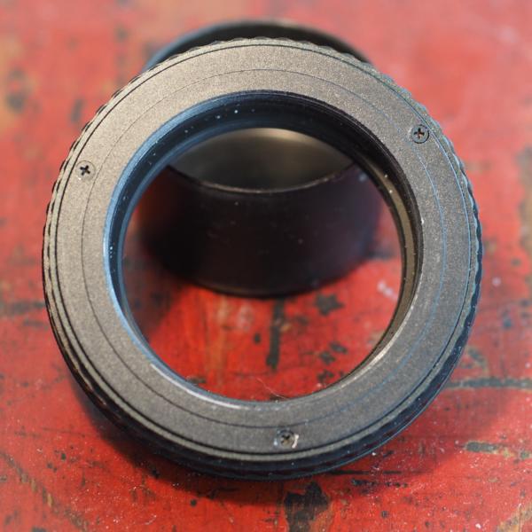 Das Objektiv habe ich dann ausgebaut und in einen kleinen M42-Zwischenring eingebaut. Den Helicoid im Objektiv habe ich stillgelegt, der ging nicht mehr,