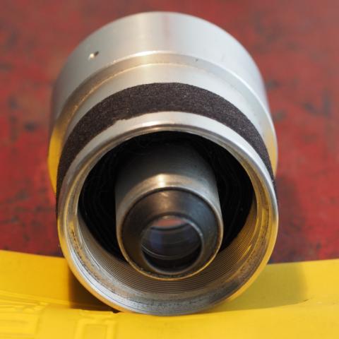 siehst Du den Falz, dort habe ich das Pentiobjektiv angeklebt (hat gerade so gepaßt, man muß auch mal Glück haben) und von hinten stabilisiert, hinter dem Rändelring außen ist das M42-Gewinde - sind chinesische Zwischenringe, ziemlich preisgünstig.