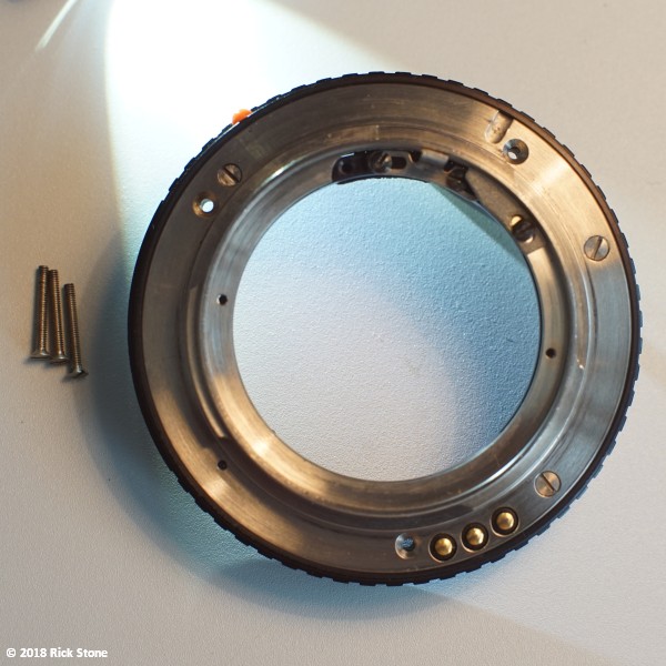 Am Schluss noch ein Bild, nachdem der Auflagering mit der Mechanik des Blendenrings abgenommen wurde.