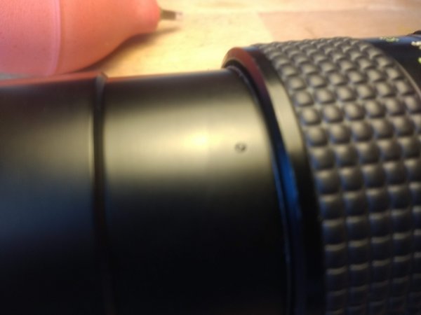Zunächst muss man das Objektiv auf den Nahbereich fokussieren. Dann findet man eine kleine Schraube, diese nur lösen.