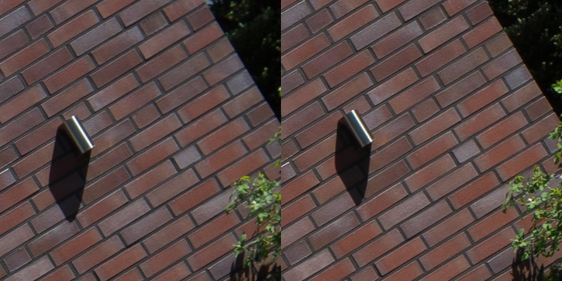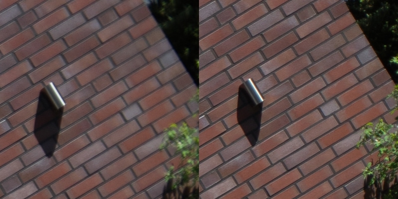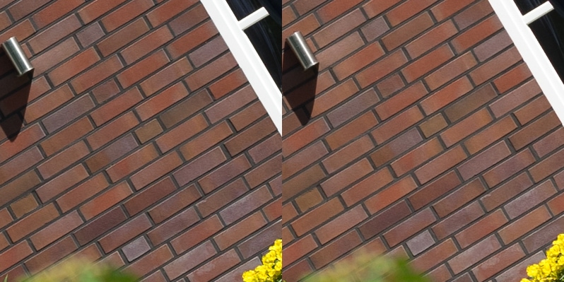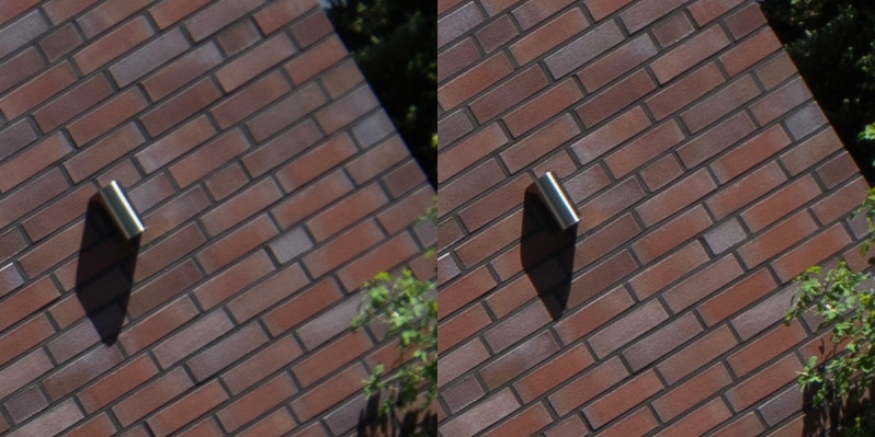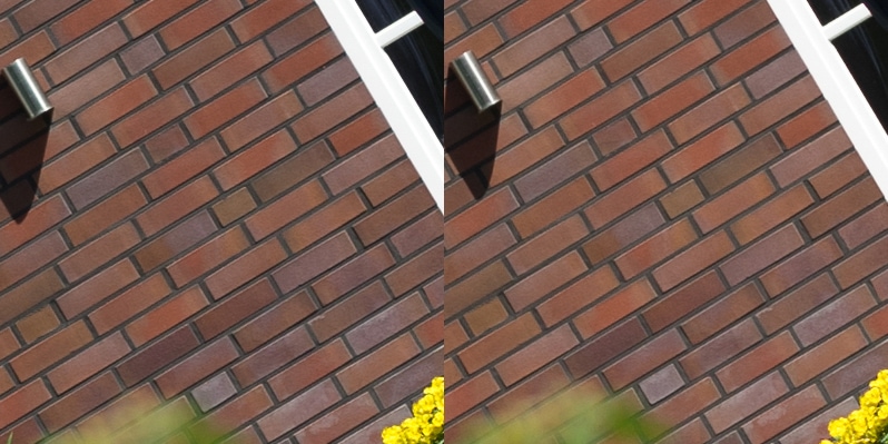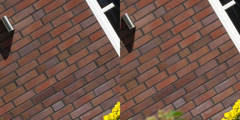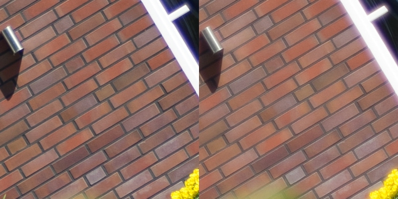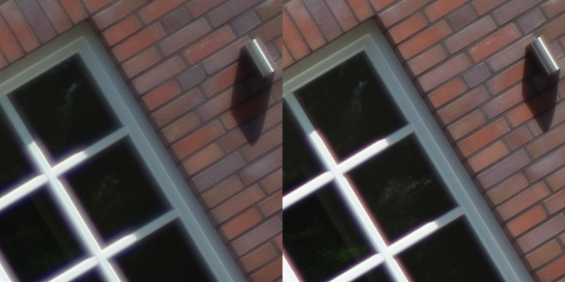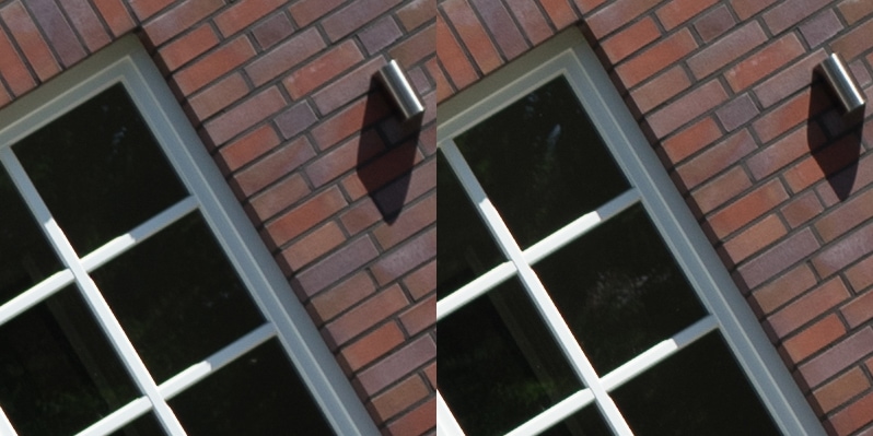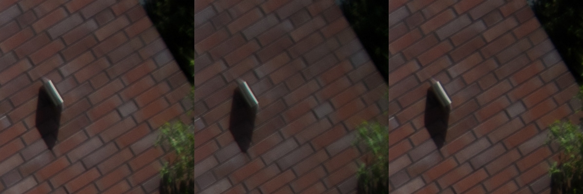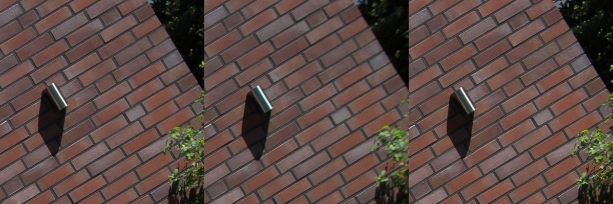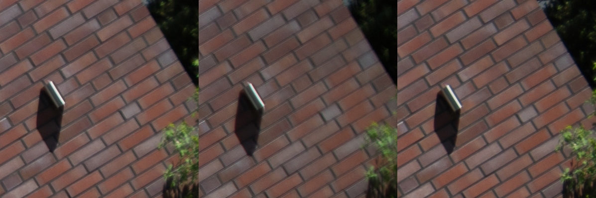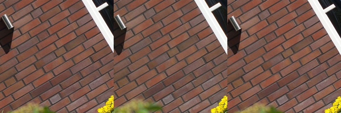 Aus diesen Bildern habe ich dann Center, Midframe und Corner gecroppt, die schauen wir uns hier an, im 100 % Pixelpeepmodus.