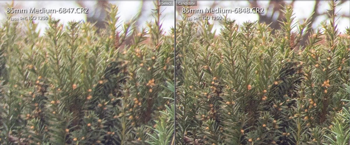 Bei Offenblende im Zentrum schon eine sehr gute Schärfe, die durch Abblenden kaum gesteigert wird.