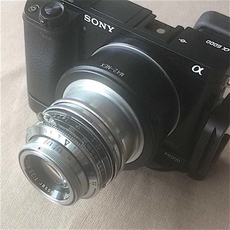 Zeiss-Opton Tessar einer 6x6 Ikonta 523/16 an der a6000..