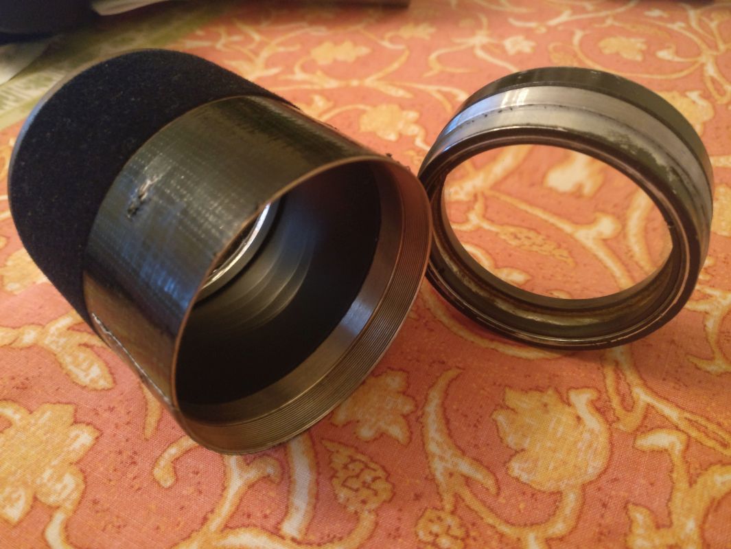 Das Objektiv kommt wohl aus einem Bühnenstrahler... war mir völlig unbekannt. Vorne ist ein Teil der Fokussiervorrichtung umfunktioniert als Sonnenblende. Ich warte dann auf Jubis Bilder vom und mit dem 120iger....:was:
