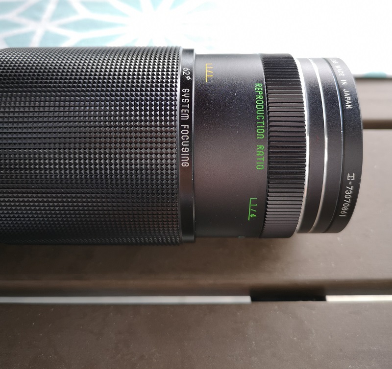Das Objektiv wird über den großen Ring fokussiert, was sauber und weich läuft. Der besondere Clou an dem Objektiv ist der kleine Fokusring vorne, mit dem man den Nahbereich von 1/4 bis 1/1 verschieben kann.