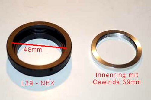 Zunächst einen Adapter NEX - L39 mit herausnehmbaren Innenring besorgt.