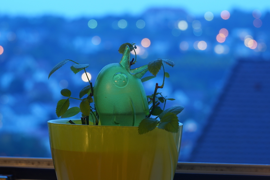 Adaptiert an die Kleinbild-Sony ist das, glaube ich, nach den Rodenstock-Trinaren das schärfste Triplet, was ich hier habe. Falls gewünscht, liefere ich auch noch ein Foto nach, das bei Tageslicht aufgenommen wurde. Die Farben des Schacht scheinen mir jedenfalls schon jetzt recht apart und natürlich.